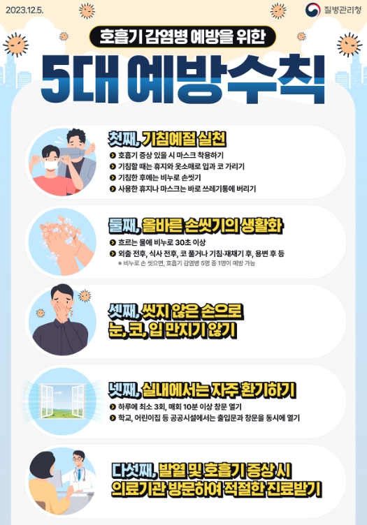 시가 강조하는 주요 예방 수칙은 ▲흐르는 물에 비누를 사용해 30초 이상 꼼꼼하게 손 씻기 ▲기침이나 재채기를 할 때는 휴지나 옷소매로 입과 코 가리기 ▲씻지 않은 손으로 눈, 코, 입 만지지 않기 등이다.