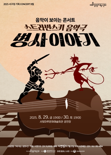 [뉴스노크=김인호 기자] 광주광역시 서구가 오는 29일과 30일 서빛마루문화예술회관에서 (재)예술경영지원센터의 ‘2025 공연예술지역유통사업’ 공모 선정작인 스트라빈스키 음악극 ‘병사 이야기’를 무대에 올린다.