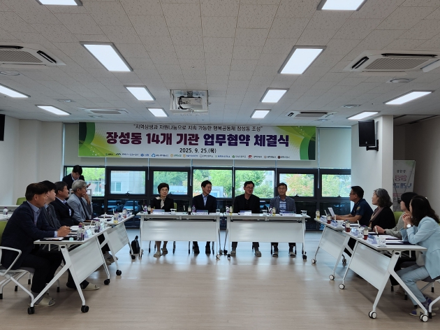 [뉴스노크=김인호 기자] 태백시시설관리공단은 지난 9월 25일 오전 11시, 장성동 생활SOC복합커뮤니티센터 2층에서 장성동 관내 14개 기관이 참여한 지역 상생과 자원 나눔을 위한 대규모 업무협약을 체결했다고 밝혔다. 장성동 소재 공공기관, 금융기관, 교육기관이 모두 참여해 지역 내 주요 기관 전체가 뜻을 모은 이례적인 사례라는 점에서 주목된다.