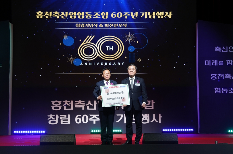 홍천축산업협동조합은 창립 60주년 기념식을 맞아 뜻깊은 자리에서 지역 인재 육성을 위한 무궁화장학금을 전달했다.