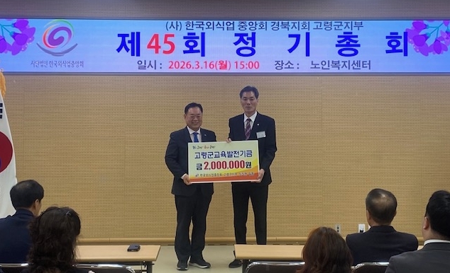 이날 사)한국외식업중앙회 경북지회 고령군지부 시진권 지부장은 “우리 지역 아이들을 위해 힘을 보탤 수 있게 되어 감사하게 생각한다.”며 “고령의 밝은 미래를 위해 학생들의 학업 환경 개선과 지역인재 육성을 위해 힘써 달라.”고 말했다.