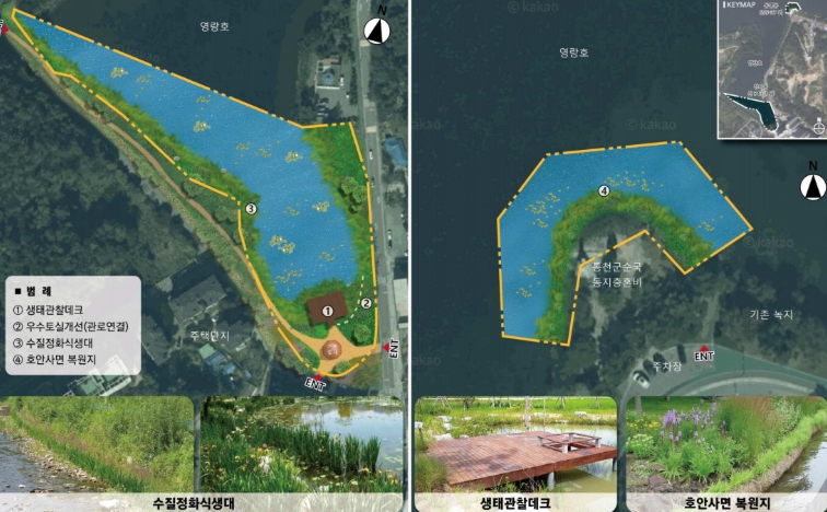 이번 사업은 악취 민원이 제기된 대명타워영랑호아파트 인근 영랑호 입구의 우수토실 토사 등의 유입을 개선하고, 통천군 순국동지 충혼비 일원 호안 침식을 완화하는 한편 식생대를 조성하는 내용으로 추진된다.