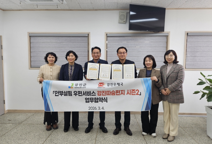 [뉴스노크=김인호 기자] 강진군이 작년에 이어 올해에도 행정안전부 공모사업 ‘2026년 읍면동 스마트 복지‧안전서비스 개선 모델 개발 지원사업’의 ‘안부살핌 우편서비스’ 부문에 선정돼 국비 1천만 원과 우체국공익재단 8백만 원을 포함한 총 2천 8백만 원 규모의 예산을 투입해 촘촘한 복지 안전망 구축에 나섰다.