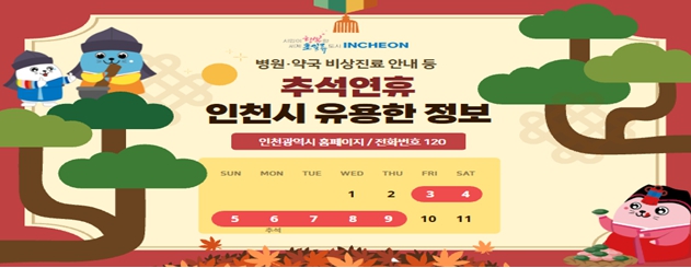 또한 시민들이 건강하게 명절을 즐길 수 있도록 연휴 기간에도 인하대병원을 포함한 26개 응급의료기관의 응급실을 24시간 운영한다. 지정 병·의원과 약국도 일정에 맞춰 문을 열어 비상 의료체계를 유지한다.
