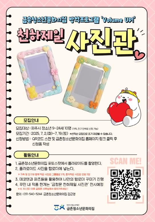 | ▲ 2025년 방학프로그램 ‘Volume UP!’ 천하제일 사진관 홍보지 |