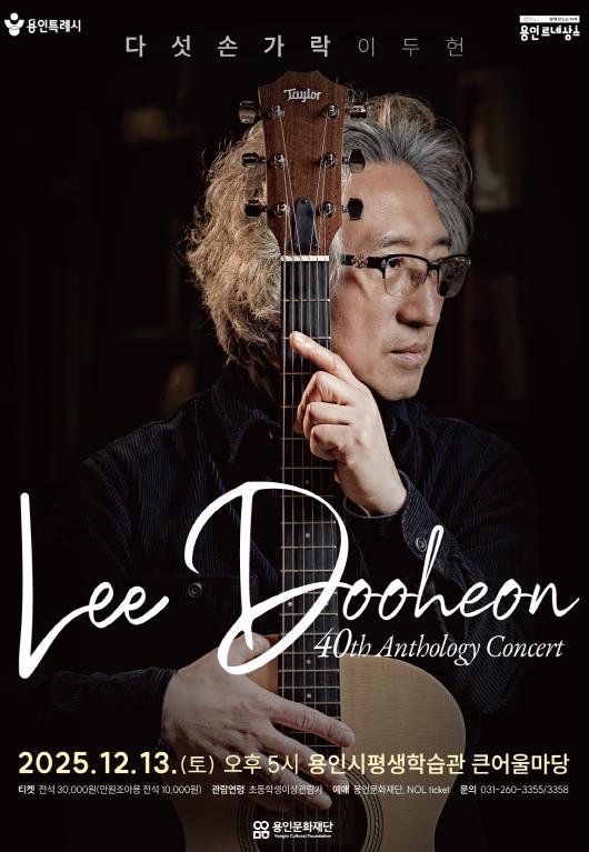 [뉴스노크=김인호 기자] (재)용인문화재단은 오는 12월 13일 오후 5시, 용인시평생학습관 큰어울마당에서 ‘다섯손가락 이두헌 40th Anthology Concert’를 개최한다.