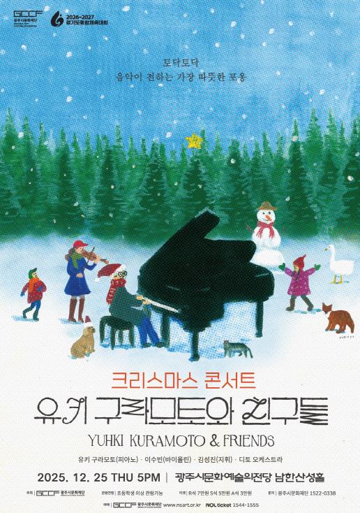 [뉴스노크=김인호 기자] (재)광주시문화재단은 오는 12월 25일 오후 5시, 광주시문화예술의전당 남한산성홀에서 ‘2025 크리스마스 콘서트 '유키 구라모토와 친구들'을 개최한다.