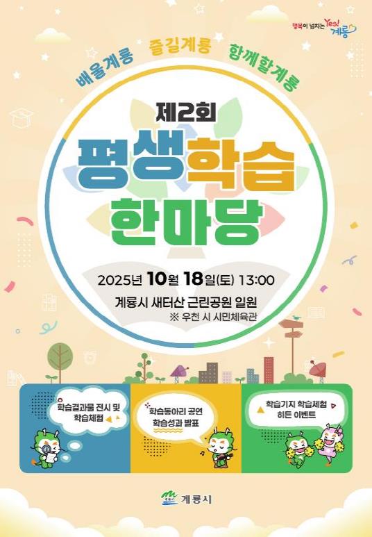 [뉴스노크=김인호 기자] 계룡시는 오는 18일 오후 1시부터 시청 앞 새터산 근린공원에서 시민이 주도하는 배움의 축제 “2025 제2회 계룡시 평생학습 한마당”을 개최한다고 밝혔다.