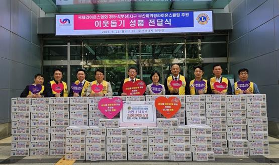 | ▲ 부산아리랑라이온스클럽, 부산 남구에 라면 134박스 전달 |