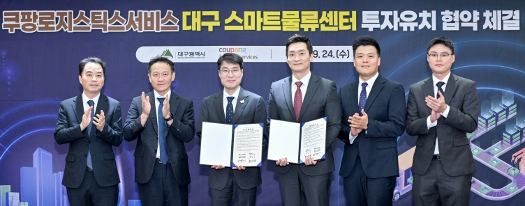 [뉴스노크=김인호 기자] 대구광역시는 9월 24일 오후 4시 30분, 시청 동인청사 2층 상황실에서 국내 택배부문 1위 기업인 ‘쿠팡로지스틱스서비스(유)’(대표 홍용준, 이하 ‘쿠팡로지스틱스서비스’)와 수성알파시티 내 첨단 스마트물류센터 구축을 위한 투자유치 협약을 체결했다.