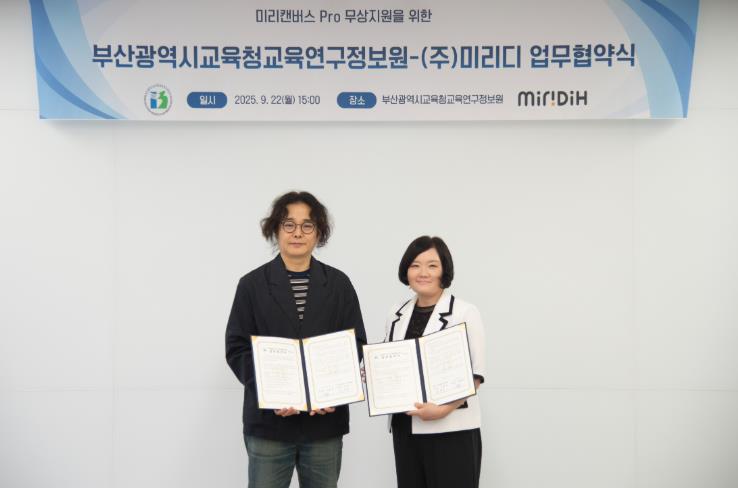 [뉴스노크=김인호 기자] 부산광역시교육청교육연구정보원은 지난 22일 오후 교육연구정보원 회의실에서 (주)미리디(대표 강창석)와 업무협약을 체결했다고 밝혔다.