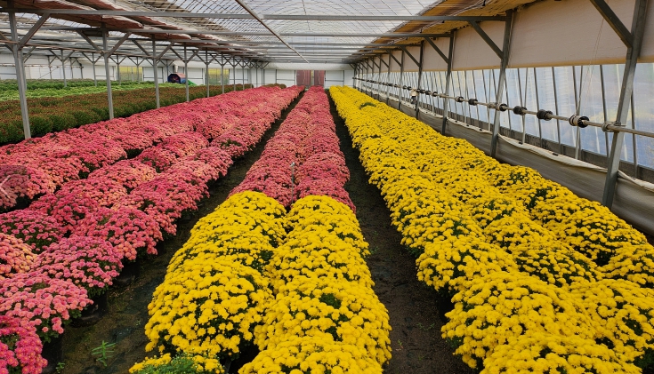 | ▲ 기술센터 내 재배된 국화 화분과 읍내 시가지에 전시중인 모습 |