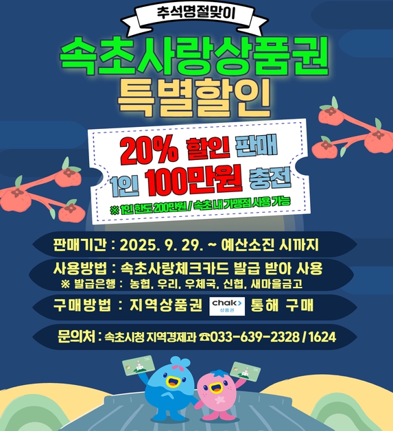 ▲ 추석맞이 속초사랑상품권 20% 특별 할인 |