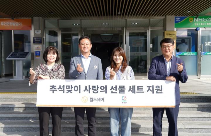 [뉴스노크=김인호 기자] 사단법인 월드쉐어는 9월 29일 홍천군청을 방문하여, 오뚜기 종합선물세트 150개(750만 원 상당)를 기탁했다.
