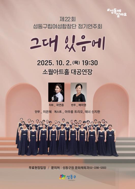 1991년 창단한 성동구립 여성합창단은 성동구를 대표하는 문화사절단으로, 2025년 제3회 남도전국합창대회 대상 수상 등 다수의 외부 무대에서 실력을 인정받고 있다. 올해 제22회 정기공연은 구민들에게 수준 높은 문화예술 향유 기회를 제공하고, 합창단원 간의 화합을 다지는 특별한 자리로 마련됐다.