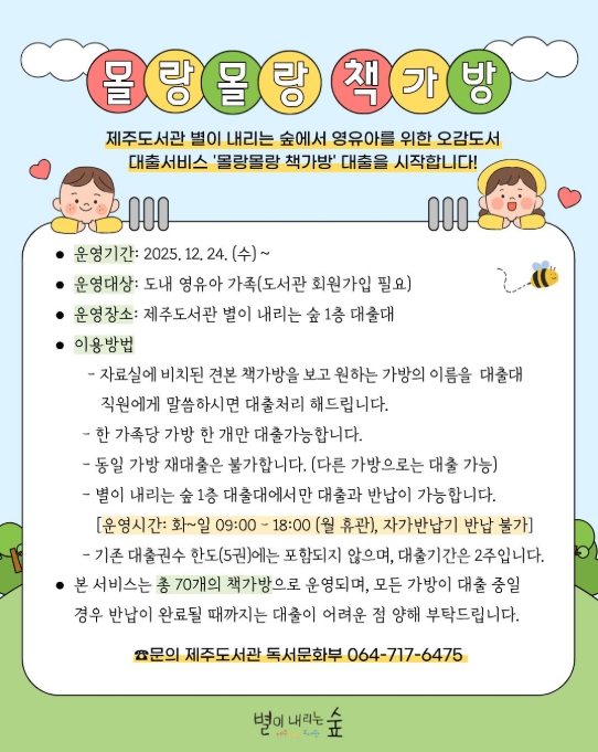 [뉴스노크=김인호 기자] 제주도교육청 제주도서관이 운영 중인 영유아 오감 도서 대출서비스 ‘몰랑몰랑 책가방’이 이용자들의 꾸준한 호응을 얻고 있다.