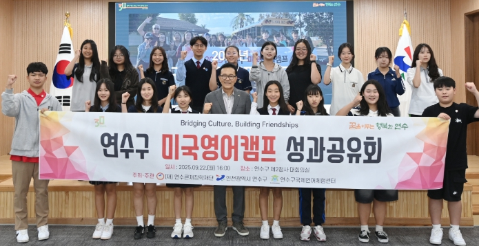 [뉴스노크=김인호 기자] 연수구는 지난 22일 연수구 제2청사에서 ‘연수구 미국영어캠프’ 성과공유회를 개최해 참가 장학생들의 학습 성과와 글로벌 경험을 함께 나누는 자리를 마련했다.