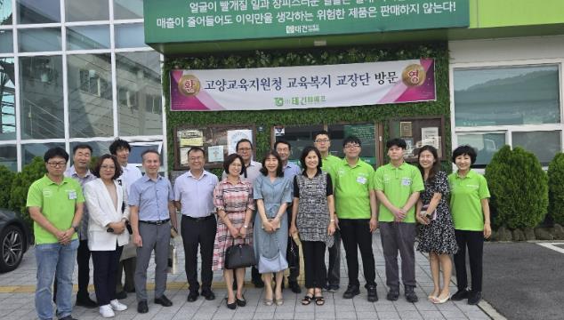 ▲ 고양교육지원청, 특수학교·특성화고 교장단과 함께 고양시 교육기부 모범회사인 ㈜태건비에프 방문 |