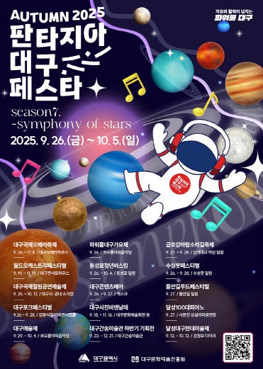 주요 공연으로는 토요시민콘서트(신천 수변무대), 판타지아대구페스타 가을축제인 ‘2025 대구예술제’(코오롱 야외음악당)와 청년버스킹(동성로 일원) 등 다양한 볼거리가 시민들이 즐겨 찾는 야외 도심 무대에서 열린다.