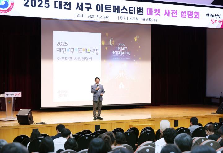 [뉴스노크=김인호 기자] 대전 서구는 10월 10일부터 12일까지 샘머리·보라매공원 일원에서 열리는 ‘2025 대전 서구 아트페스티벌’의 성공적 개최를 위해 지난 27일 마켓 참여자 사전 설명회를 열었다.