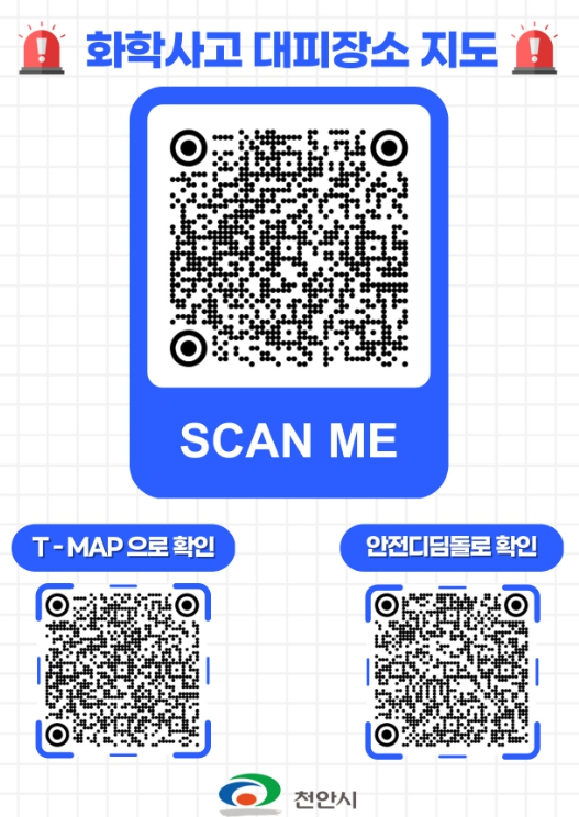 [뉴스노크=김인호 기자] 천안시는 ‘화학사고 대피장소 안내지도’를 5개 국어 리플렛과 QR안내판, 포스터 등 다양한 형식으로 제작해 배포했다고 26일 밝혔다.