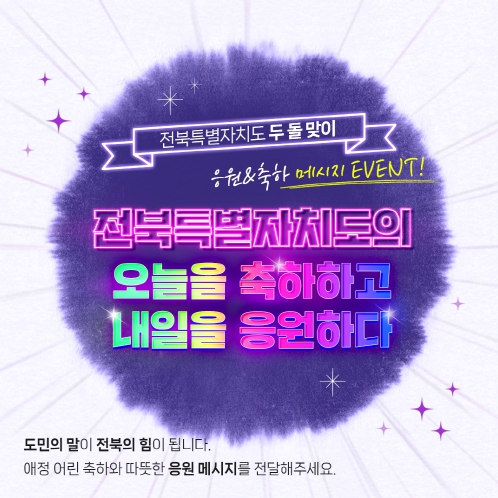 [뉴스노크=김인호 기자] 전북특별자치도는 출범 2주년을 맞아 도민이 직접 참여하는 '도민 참여 축하·응원 메시지 이벤트'를 1월 12일부터 23일까지 운영한다.