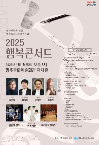 [뉴스노크=김인호 기자] 영주시는 오는 9월 6일 오후 7시, 영주시문화예술회관 까치홀에서 시민들을 위한 ‘2025 행복콘서트’를 개최한다.