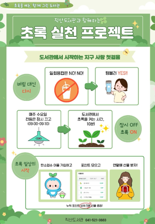 | ▲ 천안시 직산도서관 환경 보호 캠페인 ‘초록 실천 프로젝트’ 홍보문. |