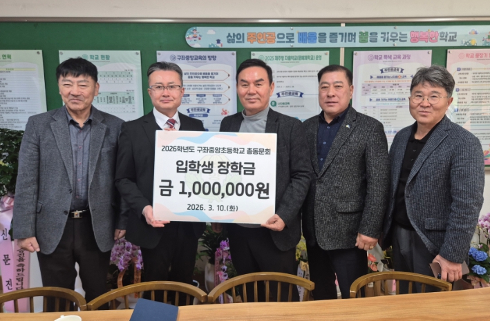 [뉴스노크=김인호 기자] 제주도교육청 구좌중앙초등학교는 10일 학교 강당에서 2026학년도 신입생들의 새로운 출발을 축하하기 위한 ‘총동문회 입학생 장학금 전달식’을 가졌다.