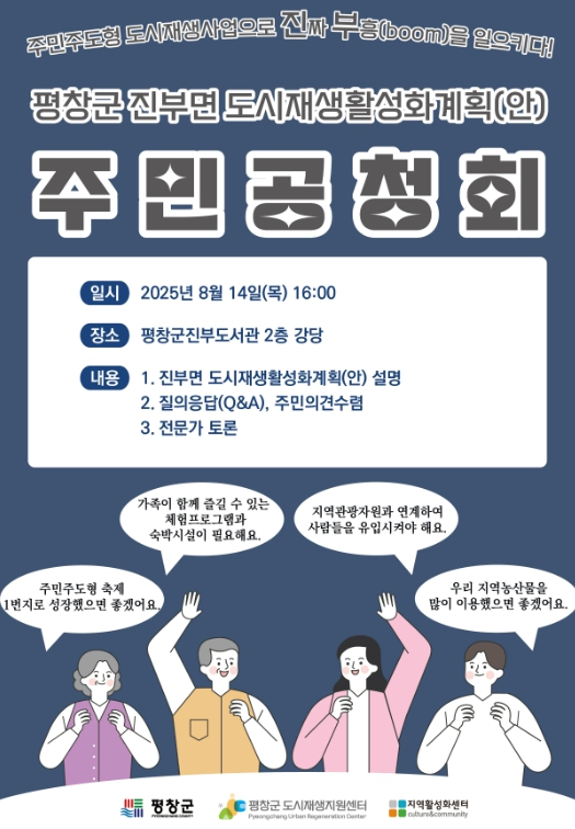 한편, 평창군은 주민공청회 이후 행정절차를 걸쳐 오는 9월 3일 국토교통부에 지역특화 분야 도시재생사업 공모를 신청할 예정이다.