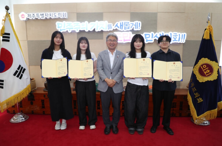 제주특별자치도의회는 도내 대학생의 지방자치 및 의정활동에 대한 인식 제고와 의정지원 업무 경험 기회 제공을 위해 지난 7월 1일부터 31일까지 1개월 간‘2025년 하반기 대학생 의정활동 체험 인턴제’를 운영했다.
