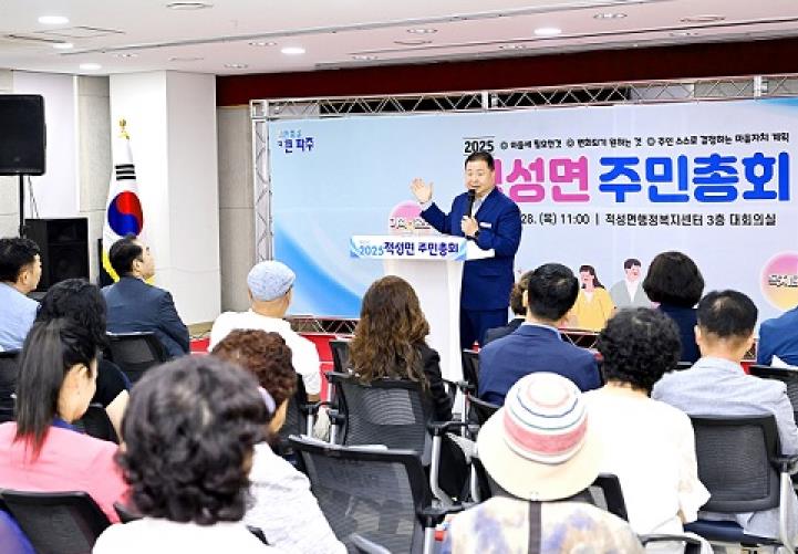 송인숙 적성면장은 “주민총회는 주민 한 사람 한 사람의 목소리가 정책에 반영되는 뜻깊은 행사”라며 “적성면 주민 여러분들의 관심과 적극적인 참여로 적성면의 변화를 이끌어 더 좋은 마을로 발전시킬 것이라 기대한다”라고 말했다.