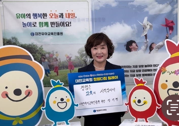 [뉴스노크=김인호 기자] 대전시교육청 대전유아교육진흥원은 대전시교육청이 추진 중인 ‘고위직과 함께 하는 청렴다짐 릴레이’ 캠페인에 동참했다고 밝혔다.