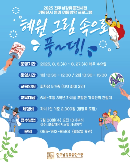 [뉴스노크=김인호 기자] 진주남강유등전시관은 기획전시와 연계한 여름방학 프로그램인 ‘혜원 그림 속으로 풍~덩!’의 참여자를 모집한다.