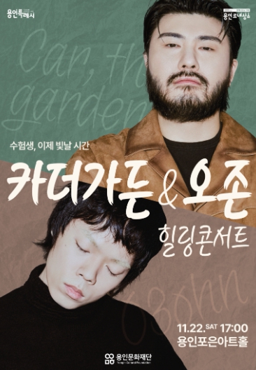 [뉴스노크=김인호 기자] (재)용인문화재단은 2026학년도 대학수학능력시험을 마친 수험생을 위해 오는 11월 22일 용인포은아트홀에서 수험생 힐링 콘서트'카더가든&오존'을 선보이며, 8월 20일에 수험생 대상 선예매 티켓을 오픈할 예정이다.