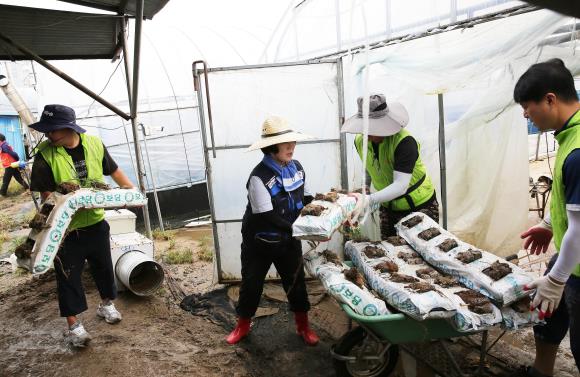 지난 4일 봉사단 11명은 광주광역시 운남동 멜론하우스 농가를 찾아 침수로 훼손된 농작물을 정리하고 비닐하우스 내부를 치우는 작업을 도왔다.