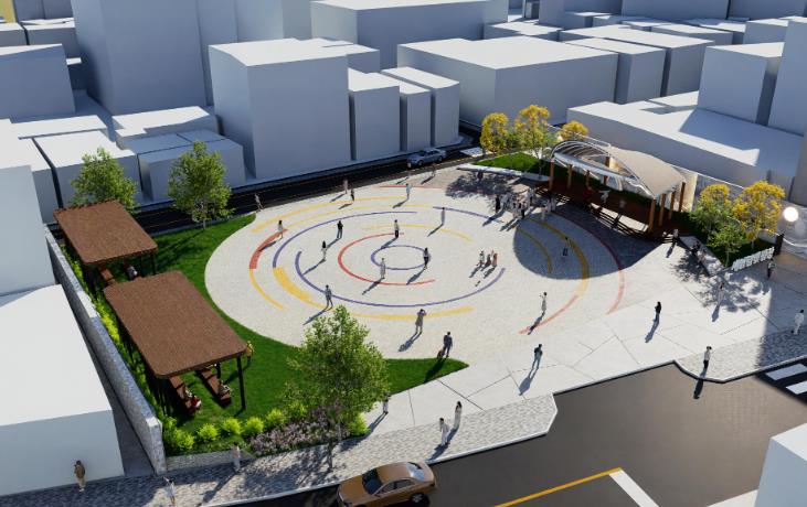 광장에는 회랑형 쉼터·공원녹지·소규모 무대 등이 함께 들어선다.