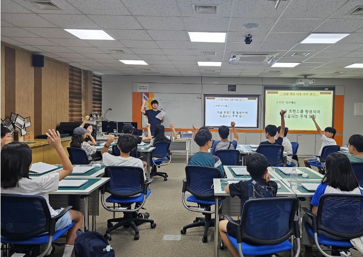 ‘수학 탐구보고서 작성하기’프로그램은 7월 31일부터 8월 1일까지 도내 중학생을 대상으로 실생활과 관련된 주제를 수학적으로 탐구하는 프로그램으로 수학적 아이디어 도출, 자료 수집·분석, 탐구보고서 작성 및 발표, 평가의견을 포함해 수학의 실용성과 학문적 의미를 체감하며 탐구력과 표현력을 함께 기를 수 있도록 구성됐다.