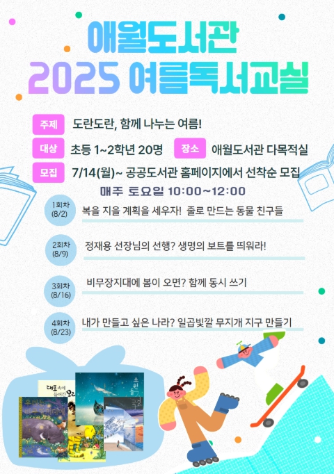 [뉴스노크=김인호 기자] 제주시 애월도서관과 한경도서관은 ‘2025 여름 독서교실’ 프로그램에 참여할 어린이를 모집한다.