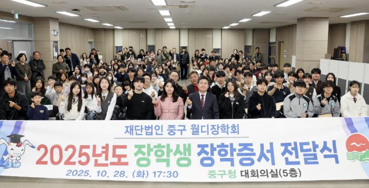 이번 전달식에서는 월디장학회 이사장인 김정헌 중구청장을 비롯한 여러 임원진 등이 참석해 미래의 주역이 될 장학생들을 격려하고 축하했다.