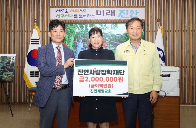이에 전춘성 진안사랑장학재단 이사장은 “진안 지역 청소년들에게 큰 힘이 될 소중한 장학금을 기탁 해주신 진안제일교회에 깊이 감사드린다”며, “기탁하신 장학금은 투명하고 공정하게 사용될 수 있도록 최선을 다하겠다. 지역 사회의 관심과 사랑이 모여 우리 아이들이 더 큰 꿈을 꿀 수 있는 발판이 될 것”이라고 화답했다.