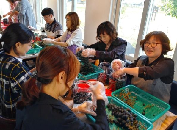 | ▲ 뱅꼬레 와이너리에서 나만의 와인을 만들고 있는 참여자들 |