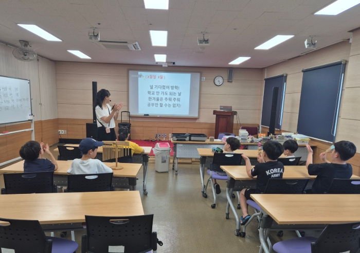 이번 프로그램은 지난 5일부터 매일 오후 2시부터 5시까지 운영되며 도서관의 공간과 자원을 활용해 학생들에게 안전하고 유익한 돌봄 환경을 제공하고 학습과 정서적 성장을 함께 지원하기 위해 통합예술 기반의 음악 놀이와 독서 문해력 향상 활동으로 구성됐다.