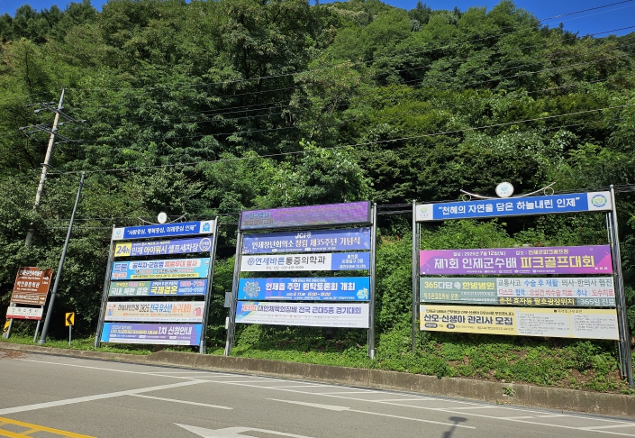 아울러 인제군은 현재 105기 419면의 현수막 지정게시대를 운영 중이다. 지정게시대는 불법 광고물 부착을 줄이고, 광고 수요를 합법적으로 충족시켜 거리 환경 개선에 기여하고 있다. 실제로 지정게시대 운영 이후 주요 도심과 관광지 일대의 무분별한 현수막 게시가 눈에 띄게 줄었다.