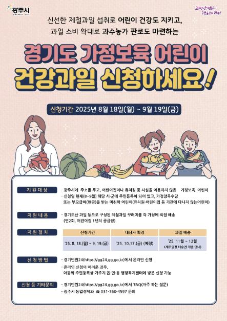 | ▲ 광주시, ‘가정 보육 어린이 건강 과일 지원사업’ 대상자 모집 |