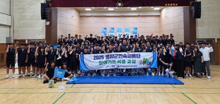 ▲ 영암군민속씨름단, 200명 중학생들 호응 속 ‘찾아가는 씨름교실’ 성료 |