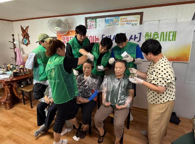 [뉴스노크=김인호 기자] 충주의빛과소금청년새마을연대은 성내충인동 경로당을 방문하여어르신들의 머리를 염색하여 드리는 봉사활동을 전개했다.