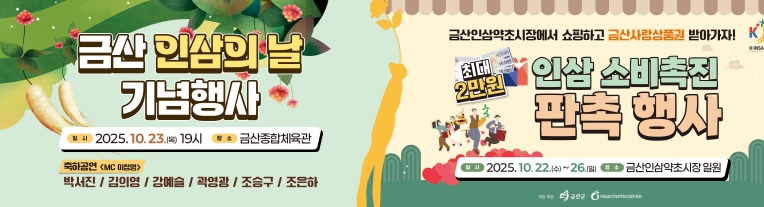 또한, 오는 22일부터 26일까지 5일간 금산인삼약초시장 일원에서 금산인삼 소비촉진 행사도 함께 추진한다.