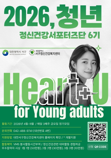 [뉴스노크=김인호 기자] 대전 서구 정신건강복지센터는 다음 달 6일까지 청년 정신건강 서포터즈 ‘마음이어유’ 6기 참여자를 모집한다.