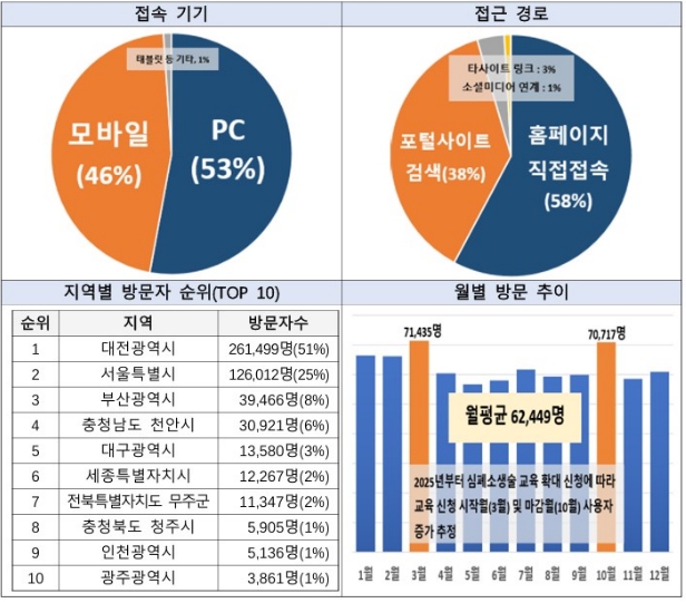| ▲ 2025년 유성구 대표 홈페이지 방문자 현황 |